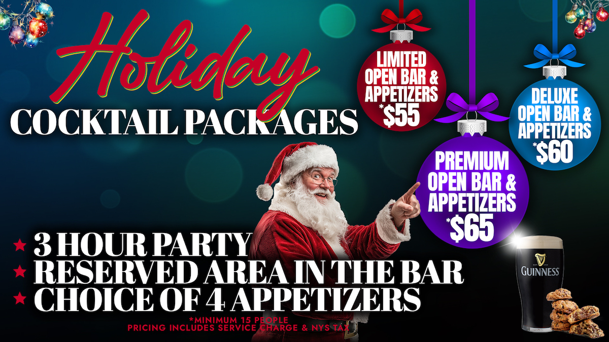 (Top shelf liquors, Robert Mondavi wines, import & domestic bottle beers & draught, includes red bull drinks, martinis, premium drinks on the rocks & craft beers)